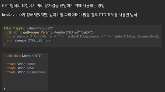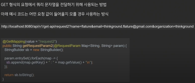 - GET 형식의 요청에서 파라미터를 전달하기 위해 URL에 값을 담아 요청하는 방법