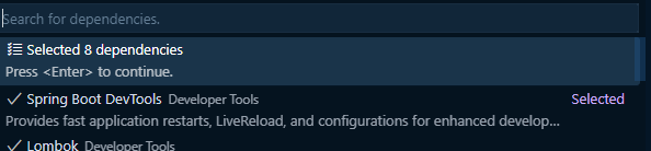 - Ctrl + Shift + P 를 눌러 커맨드 팔레트(Command palette)를 열어 ‘Spring initalizr: Create a Gradle Project’ 를 선택